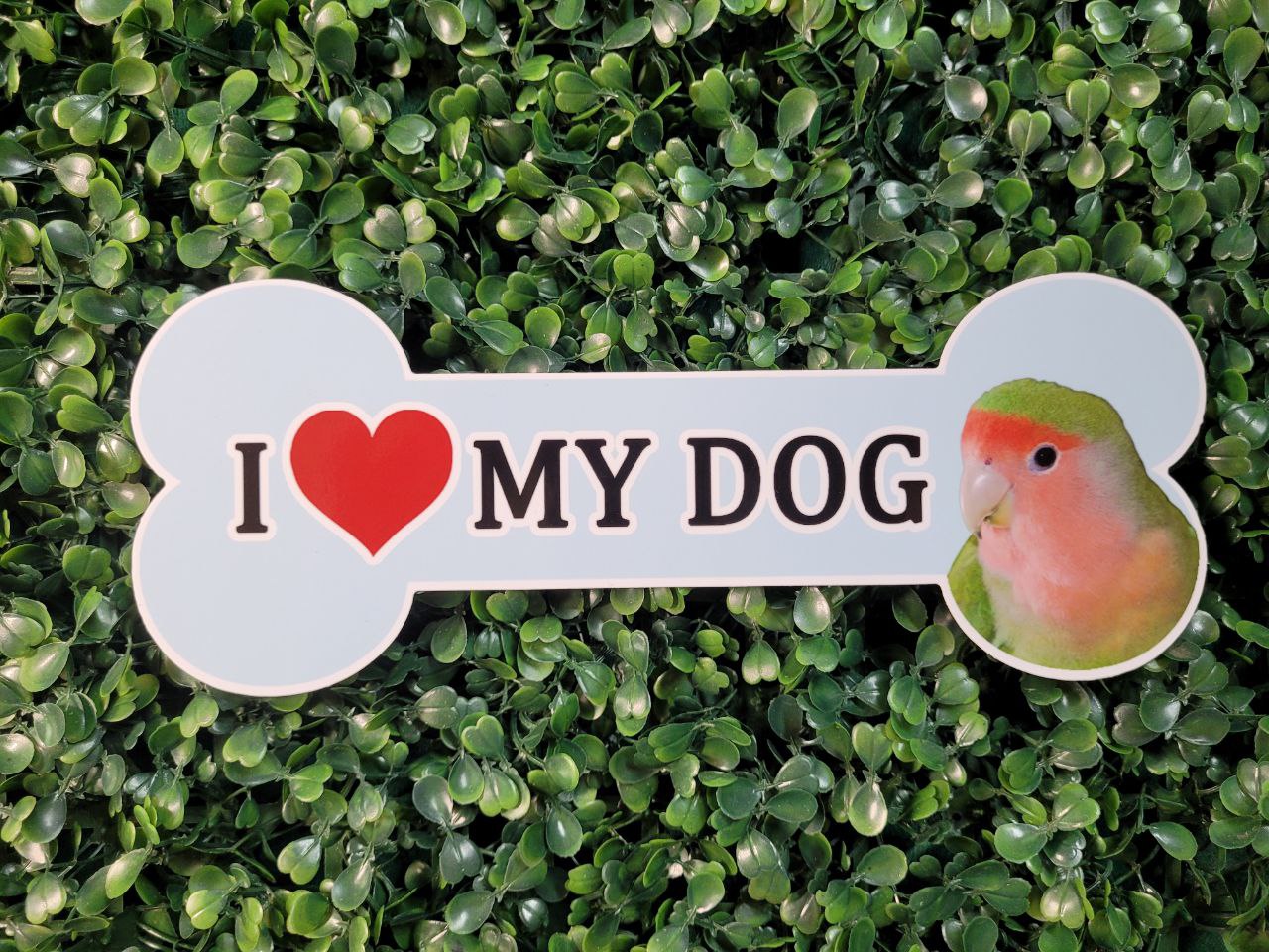 Can your dog fly? Do you like to baffle people at stoplights? Do you love your dog? Tell everyone with this handy bumper sticker! Currently available in chicken, pigeon, greencheek conure, cockatiel, peach faced lovebird, and our own very special Poe (curl crested aracari). Don't see your bird? Make a suggestion and we'll start making more with your dog of choice!